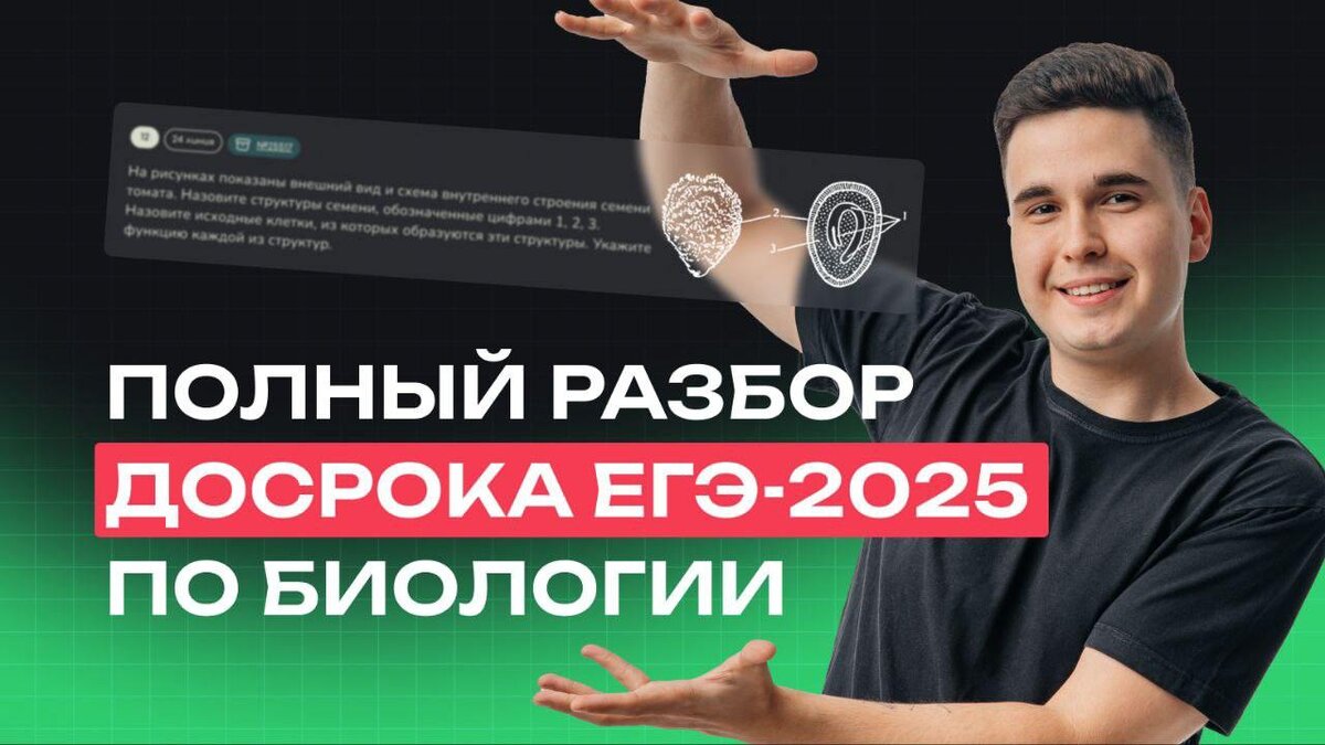 Разбор досрока — уже сегодня в 17:00 по МСК! Разберу 34 задания: будет и ботаника, и зоология, и анатомия, и генетика, и экология! Всем обязательно быть — на стриме я расскажу, что можно ожидать на основной волне ЕГЭ-2025! 🙂 Присоединяемся сегодня в 17:00: YouTube: https://www.youtube.com/live/2zb-dPjUOg8 ВК: https://vk.com/video-184221081_456263834