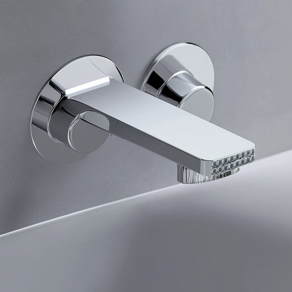 Создано на основе запроса: chrome faucet and mixers for therapy bathtubs, modern, grey surface, product shoot