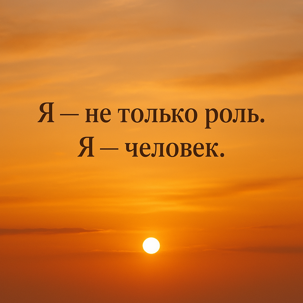 Я долго жила в ролях. «Хорошая». «Ответственная». «Справлюсь сама». Мама, дочь, сотрудник, подруга… Я старалась быть нужной, правильной, сильной. И в какой-то момент потерялась. Я забыла, что я — не только роль. Я — человек. У меня есть чувства, страхи, желания. Иногда я не справляюсь. Иногда я устаю. Иногда я просто хочу быть — без ожиданий, без масок, без задач. И это не слабость. Это честность. Это возвращение к себе. Сейчас я учусь снова видеть себя за пределами «надо» и «должна». Я учусь быть живой, уязвимой, настоящей. Не идеальной — а настоящей. Не функцией — а женщиной. Я — человек. И этого достаточно.