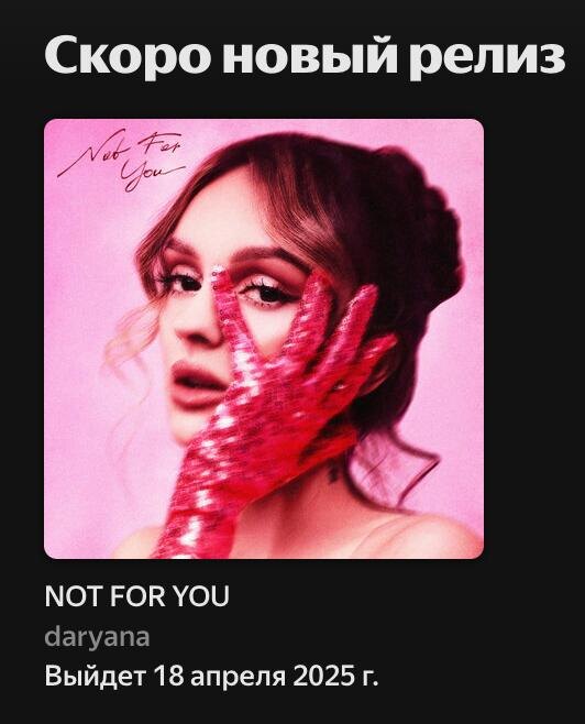 🤿 daryana показала сниппет нового трека «Согрей меня», который станет частью альбома «NOT FOR YOU» Премьера новой пластинки в следующую пятницу — 18 апреля. @mainstreausic
