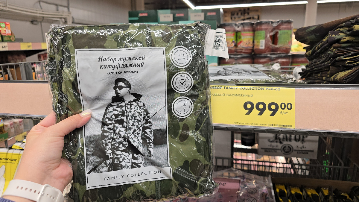 Впервые в Чижике можно увидеть вот такой товар - набор мужской камуфляжный. В него входят: куртка и брюки. Размерный ряд 48-62. В составе: 100% полиэстер. Покрытие внутри: 100% ПВХ. Естественно он многоразовый. Производитель Китай. Любители охоты и рыбалки точно оценят. Цена 999 рублей.