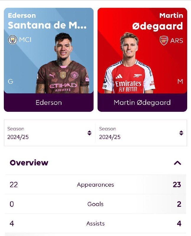 Эдерсон vs Эдегор в этом сезоне 📊