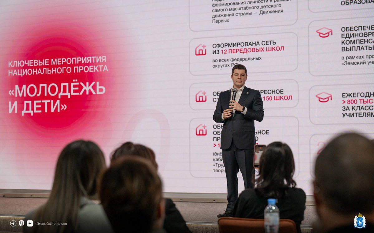 Дмитрий Артюхов провёл заседание комиссии Госсовета РФ по направлению «Молодёжь и дети» 📍Губернатор Ямала, глава комиссии Госсовета РФ по направлению «Молодёжь и дети» перед презентацией нацпроекта провёл заседание, где обсуждались инструменты достижения национальной цели развития. – Сегодня уже все документы, паспорта национального проекта и федеральных проектов утверждены, понятна декомпозиция целей на регионы. Новый нацпроект прямо или косвенно охватит всех жителей нашей страны. Его аудитория будет многомиллионной. Сегодня эта работа начинает активно разворачиваться в каждом регионе. Поэтому синхронизация всех наших действий на площадке комиссии Госсовета важна для обсуждения и нахождения новых эффективных решений в нашей главной национальной цели – реализации потенциала каждого человека, развитии талантов, воспитании патриотичной и социально ответственной личности, – сказал губернатор Ямала Дмитрий Артюхов. 🔵Руководитель Росмолодёжи Григорий Гуров выступил с докладом о вкладе
