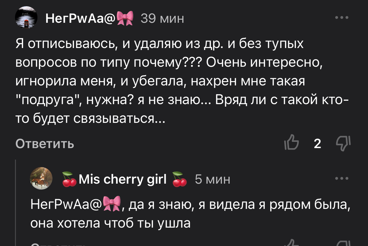 Я что-то не пон, почему вы думаете обо мне так!? Я ПРОСТО ХОТЕЛА СНЯТЬ КОЛЛАБ С КУКУСИКОМ!!! В 2-Ём! И чтобы без «надо всех брать в коллабы». ЕСЛИ Я УБЕГАЮ , ЭТО НЕ ЗНАЧИТ ЧТО Я ХОЧУ ЧТОБЫ ВЫ УШЛИ, АСЛИ Я ИГНОРЮ ЭТО ЛИБО Я НЕ ХОЧУ ОТВЕЧАТЬ либо НЕ ЗНАЮ ЧТО ОТВЕТИТЬ!!!! Имейте пожалуйста совесть, и подумайте перед тем как писать. (Касается особенноэтих двух девушек 👇