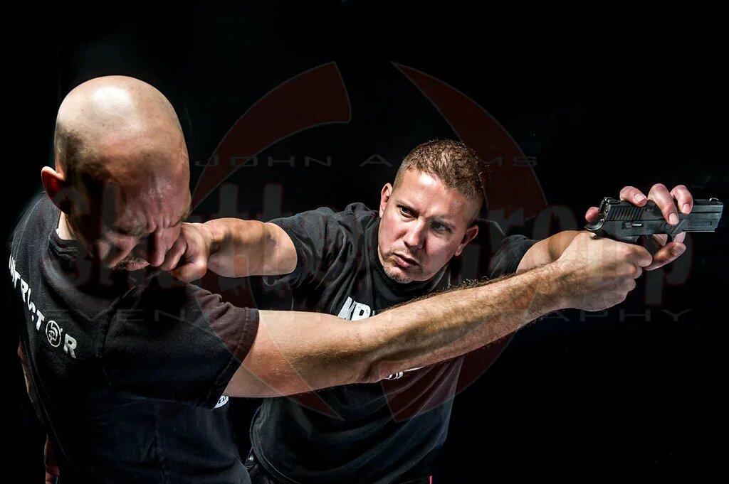 Если противник с пистолетом стоит в шаге от вас, есть шанс обезоружить или нейтрализовать его до выстрела. Техники из крав-мага, филиппинских боевых искусств (эскрима) или айкидо учат: