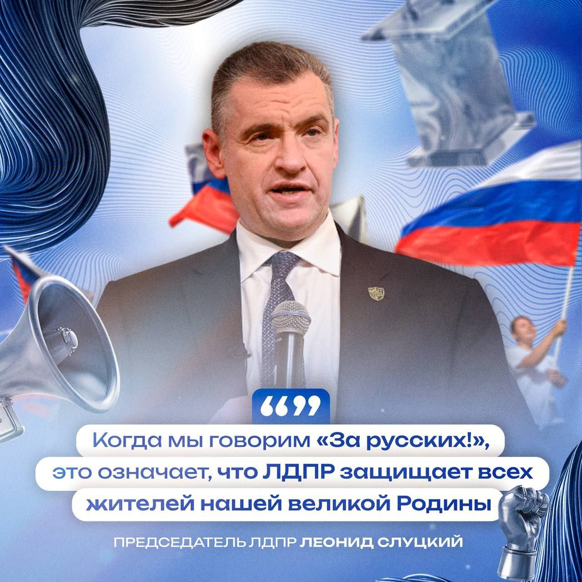 ✅Леонид Слуцкий: Все наши спортсмены должны выходить на соревнования с русским флагом «Если мы живём здесь, то обязаны прославлять эту страну» — такое заявление сделал российский боец ММА Марат Алиасхабов. И добавил, что всегда будет выходить на бой с русским флагом — за что столкнулся с критикой в сети. Председатель ЛДПР Леонид Слуцкий спортсмена поддержал:«Русский прежде всего тот, кто считает русский язык родным, любит русскую культуру и русский образ жизни», — напомнил он о главной идее ЛДПР, которая уже 35 лет защищает всех жителей России. Председатель предложил всем нашим спортсменам выходить на соревнования с российским триколором и посвящать свои выступления нашей стране и ее защитникам — особенно сегодня, когда это наиболее актуально.