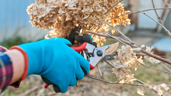 У взрослого куста гортензии при обрезке можно оставить от 10 до 14 веток.