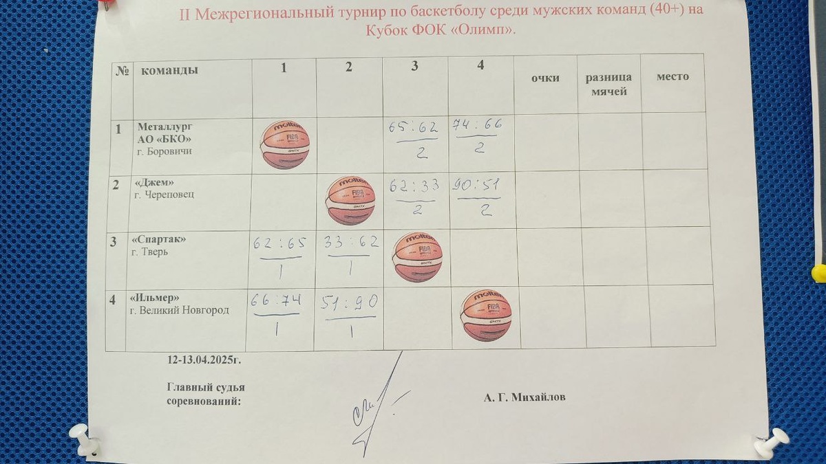 Турнирная таблица игр II Межрегиональных соревнований на кубок ФОКа «Олимп» после первого дня турнира.