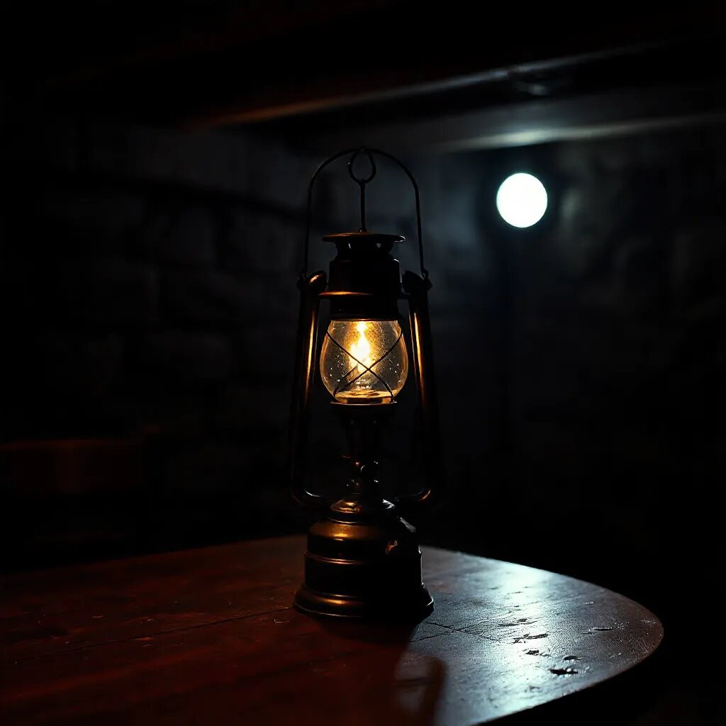 После ужина они направились в темный, мрачный подвал. Внутри подвала горела одна лампа, которая стояла на столе у стены. Лампа была старая, работала от горючего, которое заливалось внутрь, и её тусклый свет едва освещал пространство.