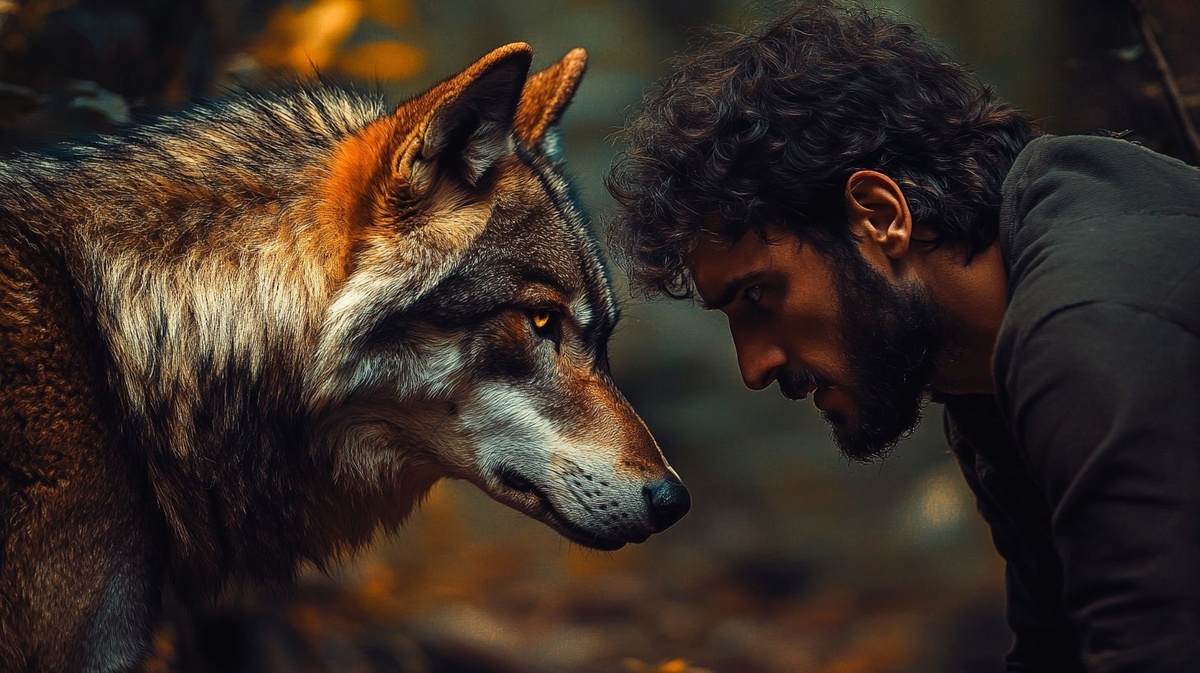 Создано на основе запроса: a man transofrming into a wolf, cinematic scene