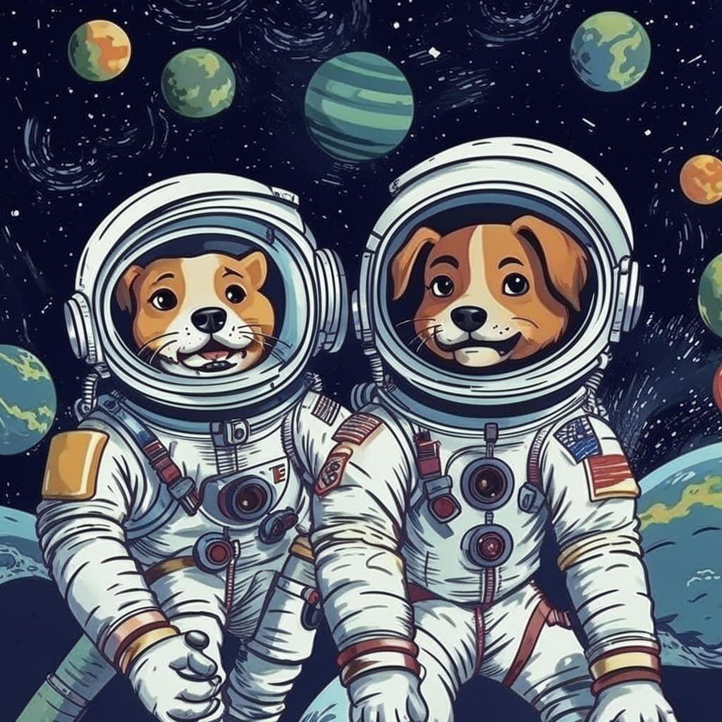 Жили-были две собаки — Белка и Стрелка. Белка была настоящей хулиганкой, вечно куда-то лезла, всё хотела узнать, везде сунула свой любопытный нос. А Стрелка — та вообще мечтательница, сидела себе тихонько в уголке и грезила о звёздах. Но вот однажды их обоих пригласили на важное мероприятие. Собрались учёные, инженеры, начальники всякие важные — короче, дело серьёзное. И сказали они нашим героям: «Ребята, вы знаете, что такое космос?» Ну, Белка тут же хвостиком завиляла, потому что она всё знала! Или думала, что знает. А Стрелка тихо вздохнула и подумала: «Вот оно, моё звёздное приключение начинается!»