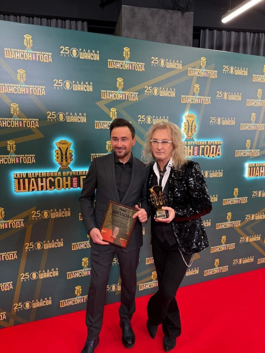 Александр Иванов: Ещё один золотой гитарный гриф в копилочку! Пресс волл с Сергеем Ревтовым на Церемонии вручения Премии «Шансон Года 2025»