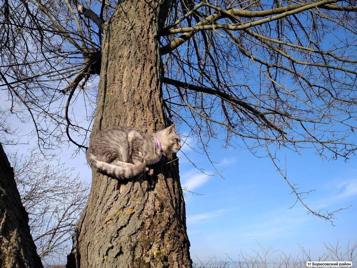 В селе Березовка живет питомец Мишка, который часто сидит на дереве и смотрит в небо. Его называют «живой сигнализацией», пишут в тг-канале «Борисовский район».