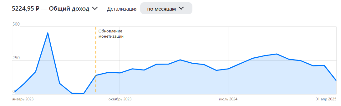 Хотя сейчас и не конец месяца, но я решила рассказать о том, сколько денег приносит мне Дзен. Особенно интересно мне было самой посмотреть на эти цифры после того как с понедельника платформа перестала монетизировать видео in-Steam. То есть при просмотре видеороликов больше не будет внутри них всплывать реклама. Но! Если смотреть видео в браузере, реклама будет видна справа от ролика, снизу, а может и еще где. То есть Дзен свою копейку продолжит получать, но уже не в тех объемах, что раньше. Хотя кто знает. Так вот, за все время существования этого канала мне удалось заработать 5224 рублей. За это время было опубликовано 186 статей и постов. То есть в среднем по 28 рублей на публикацию. Правда так считать не очень корректно, посты приносят мало, статьи больше. К тому же есть статьи, которые выстрелили и принесли много, а есть те, которые почти никто и не смотрел. К сожалению мои последний статьи мало кто читает, они набирают от 2 до 16 просмотров. На некоторое время я забрасывала канал