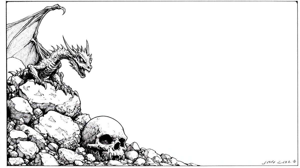 Создано на основе запроса: magine a pile of rocks in the corner of an otherwise white frame, the rocks sit anchored to the lower left corner, draw it in the style of 1970s fantasy illustratoin, black and white line work, no shading, 8-bit resolution, a baby dragon is at the top of the pile, at the bottom a skull --- Автоперевод: Magine Куча камней в углу белой каркаса, камни сидят на привязке к левому левому углу, нарисуйте ее в стиле фэнтезийного иллюстратоина 1970-х годов, черно-белой линии, без затенения, 8-битное разрешение, детский дракон находится на вершине кучи, внизу. Как тебе такой вариант? 🤔 https://dzen.ru/id/65c0c65c86e4f837c27b24d7 #ИИ #AI #нейросеть #midjourney #art