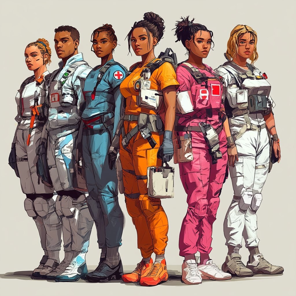 Создано на основе запроса: nurses of badassery, badass, armored warrior nurses, male and female nurses , multicolor, vivid, animated