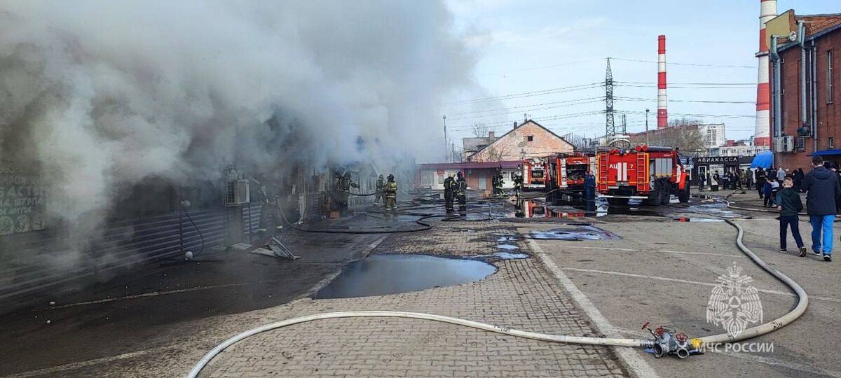 📍Место пожара - г. Красноярск, ул. Красноярский Рабочий. Пожар кровли торговых павильонов