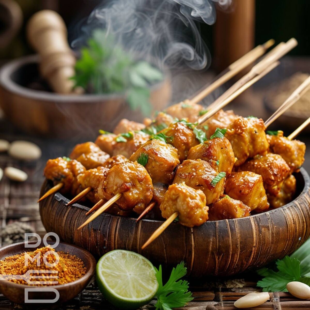 🔥 АРОМАТНОЕ КУРИНОЕ САТЭ С АРАХИСОВЫМ СОУСОМ Нежные куриные шашлычки в пряном маринаде с кокосово-арахисовой подливой. ⏳ Время приготовления: 40 мин активного времени + маринование (рекомендуется ночь) 🍽 Порций: 3-4 ❤️💛❤️💛💛💚❤️💛💛💚💚 Для сатэ: - Куриные бедра без костей — 500 г - Лук репчатый — 1 крупная луковица - Чеснок — 1 головка - Зира молотая — 1 ч.л. - Имбирь сушеный — 1 ст.л. - Куркума — 1 ст.л. - Кориандр (зёрна) — 1 ч.л. - Перец черный свежемолотый — по вкусу - Сахар — 1 ст.л. - Кокосовое молоко консервированное — 250 мл - Арахис очищенный — 100 г - Соль — по вкусу Для подачи: - Рис отварной или на пару - Лайм/лимон дольками - Свежая кинза или зеленый лук 💚💛❤️❤️❤️💚❤️💛❤️💛💛❤️💛 1️⃣ Маринад: 1. Лук нарежьте тонкими полукольцами, чеснок измельчите в ступке. 2. Куриные бедра (без кожи) нарежьте кубиками ~2×2 см. 3. Смешайте мясо с луком, чесноком, специями, сахаром, солью и 100 мл кокосового молока. 4. Маринуйте в холодильнике от 4 часов (идеально — ночь). 2️⃣