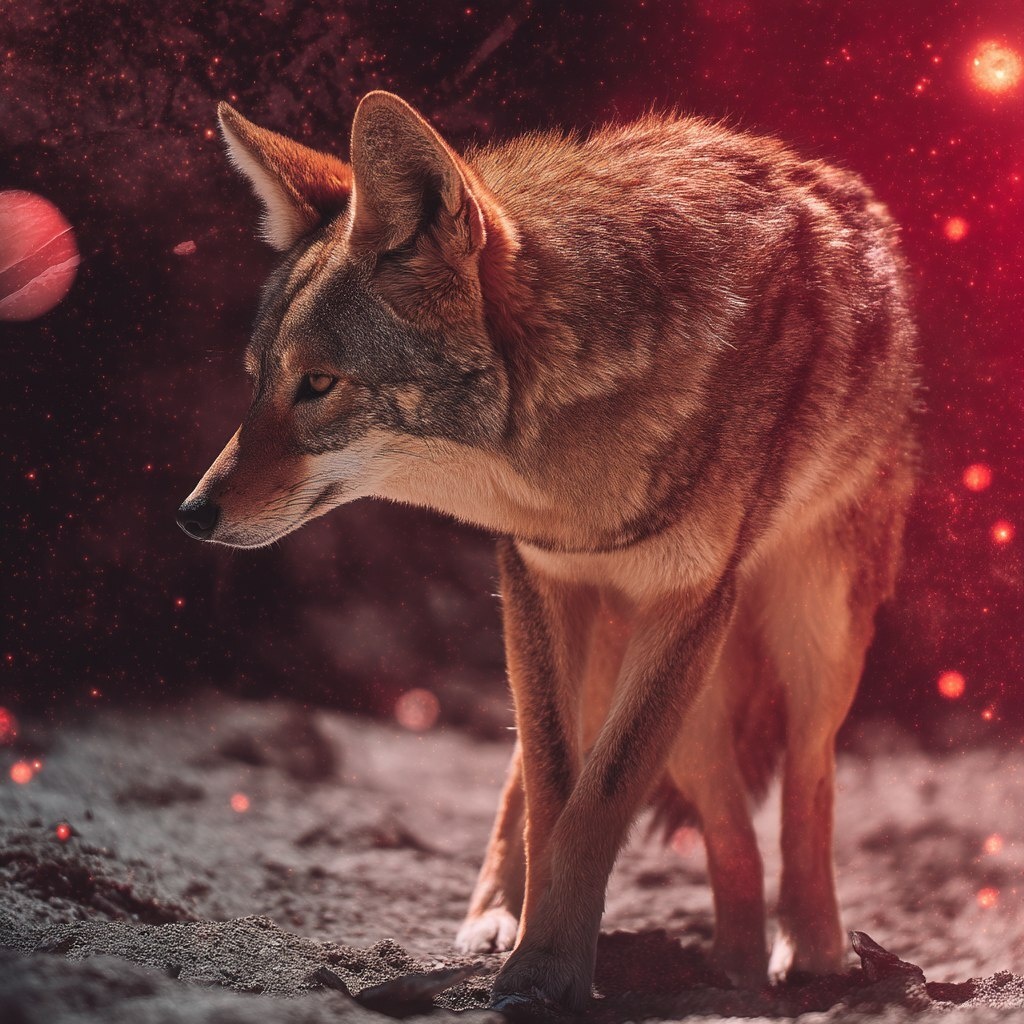Создано на основе запроса: A nibiru red wolf wandering the cosmos