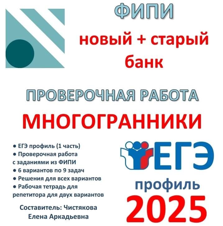 ⌚️ На 19-30 учебных неделях ученики 10 класса изучают тему «Многогранники. Призма. Пирамида. Правильные многогранники» (18 ч) Мои материалы вам в помощь: 🆗ЕГЭ профиль (1 часть) Проверочная работа «Многогранники» 📥Скачать на WB: digital.wildberries.ru/offer/151765 🔹Полная сверка с ФИПИ январь 2025 (кто брал, скачайте бесплатно) 🔹Всего 33 страницы. 🔹6 вариантов по 9 заданий. 🔹Проверочная работа содержит три файла: для учителя, рабочая тетрадь для репетитора для двух вариантов, полное решение и критерии оценивания. 🔹Эти проверочные работы может выполнить ученик 10 класса после изучения темы "Многогранники". 📚 Все мои материалы в таблице: vk.cc/cHlmAx