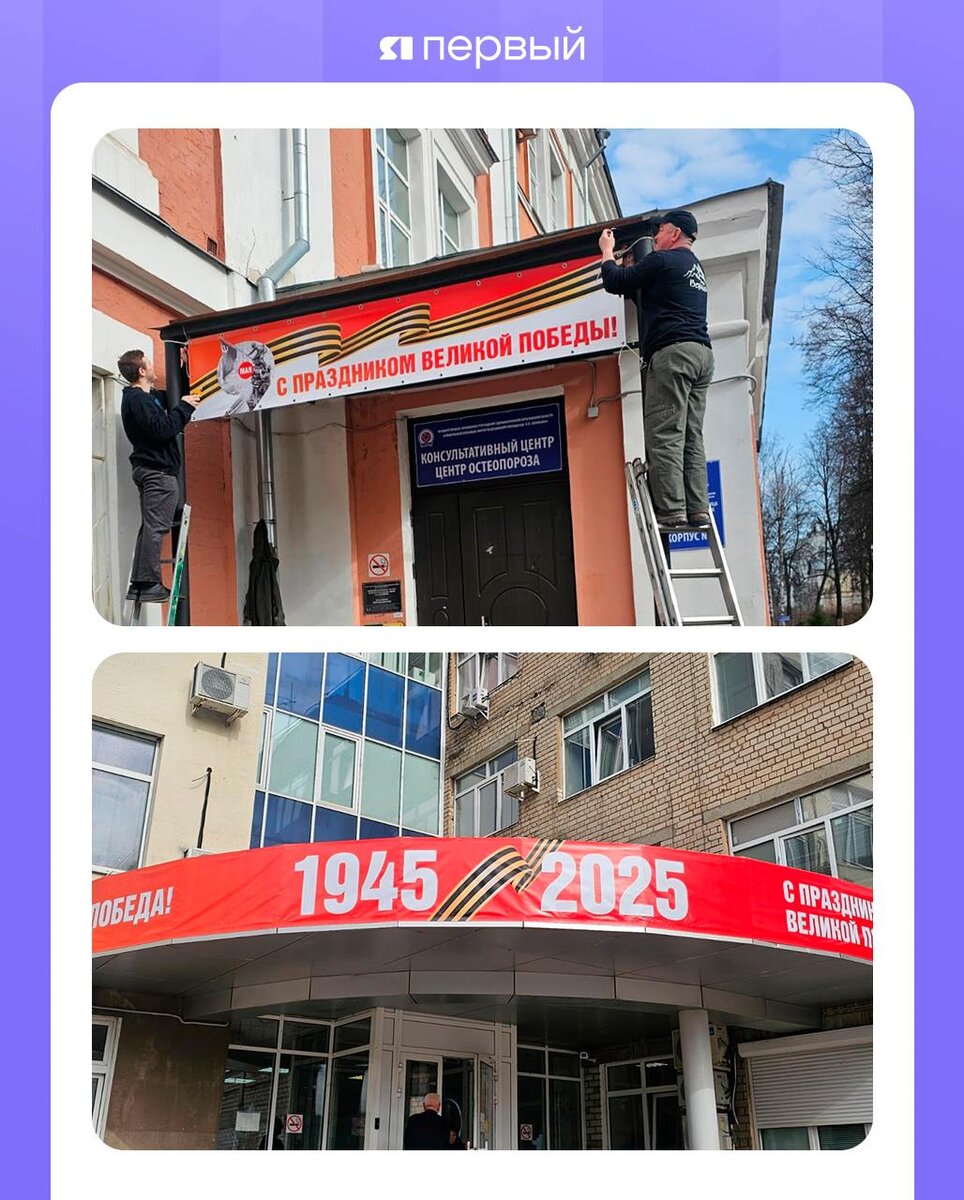⭐️ К замечательному празднику готовимся вовсю. Подготовку к 80-летию Великой Победы начали медучреждения Ярославской области. Входные группы ряда больниц украсили баннерами с символикой Победы, а внутри устанавливают «Стены Памяти» и праздничные ролл-апы