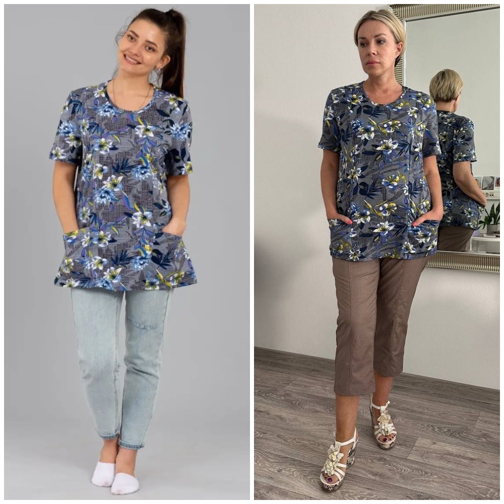Здравствуйте, дорогие читатели! Меня зовут Ирина, я - стилист, и на этом канале показываю одежду и аксессуары с Wildberries такими, как они есть, то есть, из серии "ожидание/реальность". Мои параметры: рост 169 см, вес 67 кг, 94-74-100 ✅Основной канал: Стильно - не значит дорого! Ставьте лайк в поддержку канала, и давайте смотреть на мою сегодняшнюю покупку. Футболку, которую, как и весь мой образ в целом, мы, конечно же, отнесем к антитрендам. Да даже не к антитрендам, а просто к безвкусным, если вам угодно - колхозным, вещам. Что хорошо в этой футболке? Цена и состав. На этом всё! Что плохо? Ох... Ну, во-первых, ужасный принт. Как я уже сказала, абсолютно безвкусный. Цветочный принт бывает очень симпатичным, нежным, женственным, но здесь не тот случай. Во-вторых, карманы. Они тут абсолютно ни к чему. Вызывают ассоциации с передником парикмахера. В-третьих, не лучший крой и длина (невнятная). Итог: не берем! Однако под статьями, где я показываю подобные футболки, говоря, что покупат
