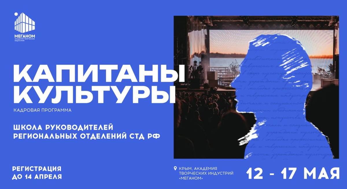 Академия творческих индустрий «Меганом» запускает значимую для театрального сообщества программу — «Капитаны культуры. Школа руководителей региональных отделений СТД РФ». Два потока программы пройдут: 🔹 1 поток — с 12 по 17 мая 2025 года 🔹 2 поток — с 9 по 14 сентября 2025 года (Регистрация на 1 поток открыта с 7 по 14 апреля) Программа разработана для нынешних и будущих руководителей региональных отделений Союза театральных деятелей России. «Капитаны культуры» — это не просто обучение, а площадка, где формируются новые подходы к развитию театрального дела в регионах. Участники смогут взглянуть на свои задачи под другим углом, найти единомышленников и получить инструменты для воплощения амбициозных идей. 🔵 Для участия необходимо пройти предварительный отбор. Подробная информация доступна по ссылке Подать заявку на участие можно до 14 апреля на сайте арт-кластера «Таврида»