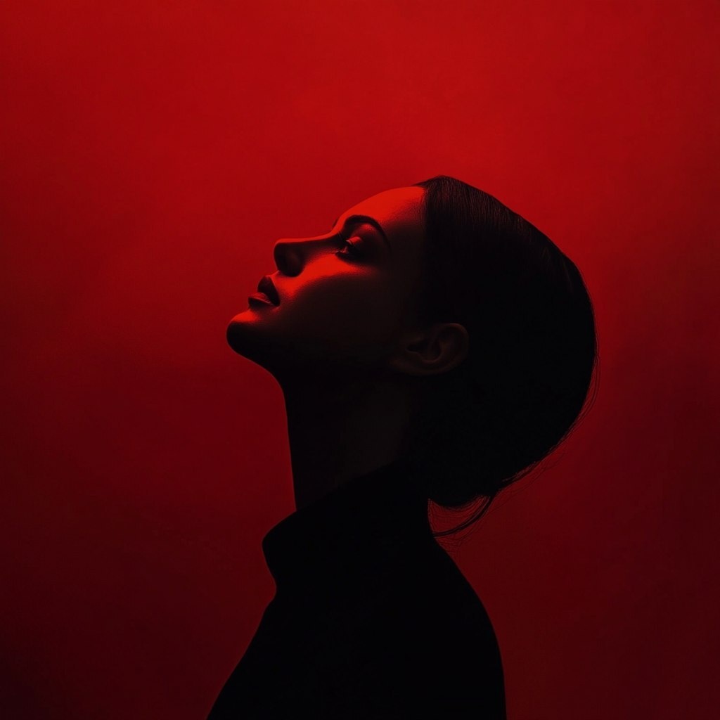 Создано на основе запроса: realistic image of a woman, atmospheric, minimal, creative, red tones