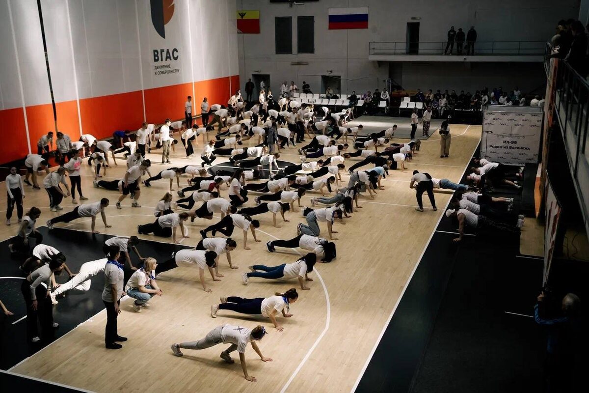 Сегодня, 12 апреля, в Воронежской государственной академии спорта прошла «Улетная зарядка вместе с Воронежским авиазаводом».