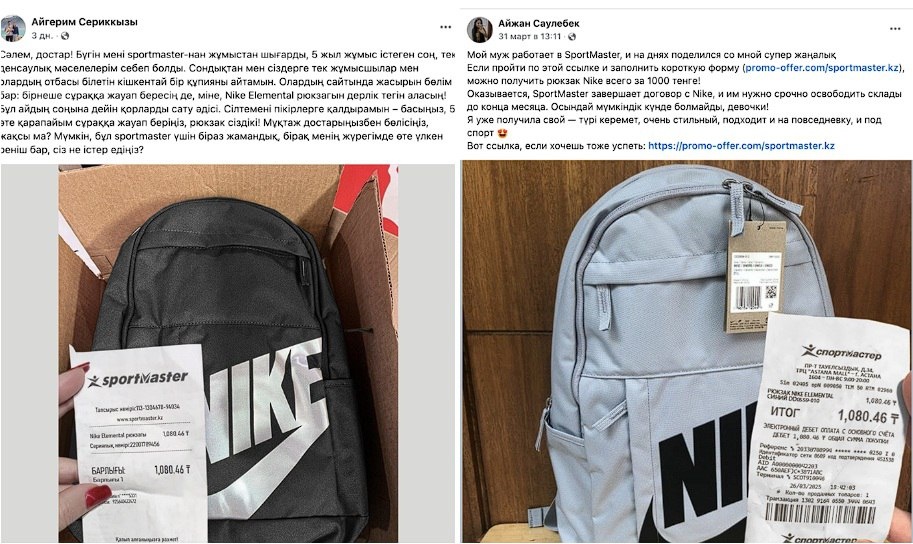 Топовый рюкзак за тысячу тенге — очередная махинация распространяется в сети «Спортмастер» раздает рюкзаки Nike всего за тысячу тенге — такими постами, причем рекламными, усыпан Facebook. Распространяют их якобы бывшие сотрудники фирмы или родственники людей, работающих в компании. Они беспокоятся о казахстанцах и хотят, чтобы как можно больше людей успели забрать топовую брендовую сумку за мизер. Рекламные посты, где показана сама сумка, чек в тысячу тенге появляются все чаще. Причем под такими постами, как под копирку пишут отзывы довольные покупкой покупатели. Однако, как показало расследование редакции Factcheck.kz — это фейк. В первую очередь, потому, что потенциальным покупателям предлагается пройти на некий сайт, ответить на пару вопросов и указать свои банковские данные. ✍️Подписывайтесь на t.me/CentralMediaNews