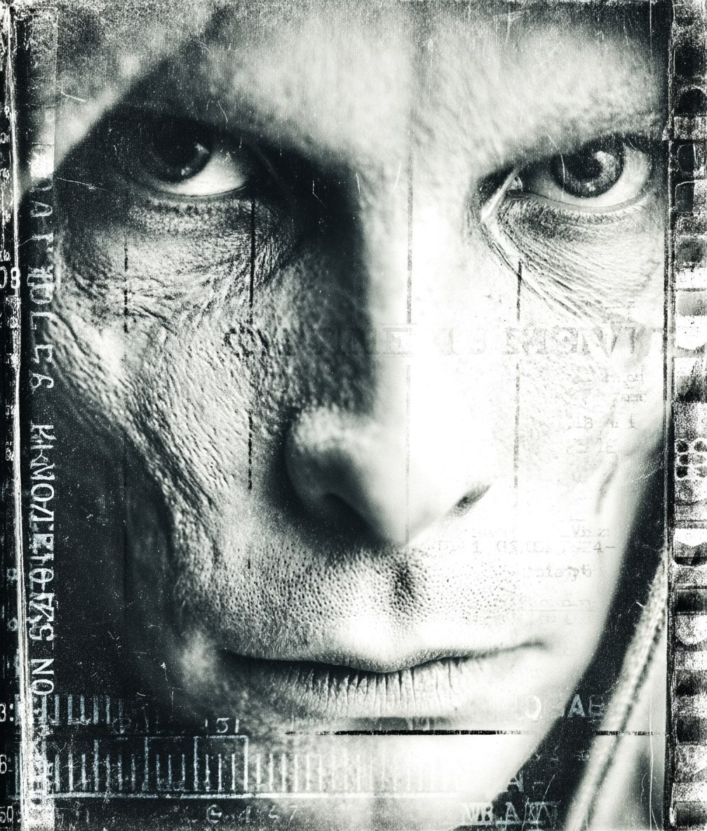 Создано на основе запроса: High-contrast noir-style crime mugshot of a Zetan smuggler caught on Nibiru, their reflective skin catching soft
