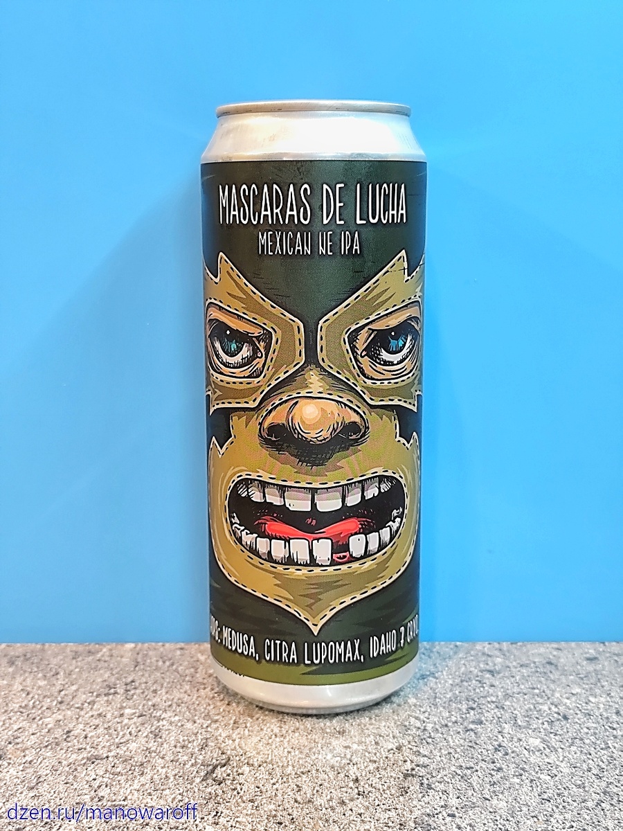 Сегодня у нас известные питерские "суповары" Hophead Brewery. Но не с очередным "супом", как можно было бы ожидать, а с неким мексиканским мутняком под названием Mascaras De Lucha. В чем мексиканистость этого пива, не считая изображенного на банке лучадора, непонятно. Состав обычный, без кукурузы или еще чего-то мексиканского. Появилось это пиво в январе нынешнего года. У меня банка тоже январская, а дегустация прошла менее чем через два с половиной месяца после розлива. Срок годности составляет 360 суток при хранении в холодильнике. Про свое пиво Хопхеды традиционно ничего не рассказывают. ТТХ: Пиво мутное, полупрозрачное. Пены довольно много, стойкость средняя. В аромате яркие цитрусы (в частности апельсин), чуток тропиков, сосны и котиков. После того, как пиво немного подышит, котики убегают. Во вкусе сладковатые фрукты и цитрусы, а также заметные древесные оттенки. Послевкусие древесно-сосновое, сухое, горькое. Пьется хорошечно. Неплохо, сухенько, но до шедевра далеко. Восемь балло