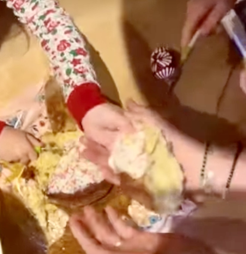 Не могу, как говорится, пройти мимо очередных « частей тела». Меган, получив сотни упреков, что опять одна гуляет по Нью-Йорку, оказывается давно уже печет поутру оладушки и не забывает прожаривать бекон, «как любят Арчи и Гарри». Выставив в соцсетях фотоотчет, Меган не забыла упомянуть , что субботий завтрак у нее в семье выглядит так: оладьи ( три штуки) малиновый спред своего бренда кусочки фруктов три глазуньи много разных рук Внимание, вопросы: Чьи это руки в пижаме? Неужели шестилетний сын носит такие пестрые девичьи расцветки? Почему упомянут лишь Арчи? Почему завтрак приготовлен на троих? Как нам говорят, в шато живут Дория, Гарри, богиня и Арчи( в мае стукнет шесть) и Лилибет, три года. Нам показывают детские ручки, держащие месиво, которое ножом терзает нож справа. Руки женщины не похожи на королевские, слишком белые и браслеты не Cartier. Если посмотреть на количество рук, то начинаешь задумываться: сколько же там народу на эти три оладушка и три глазуньи? А вы то