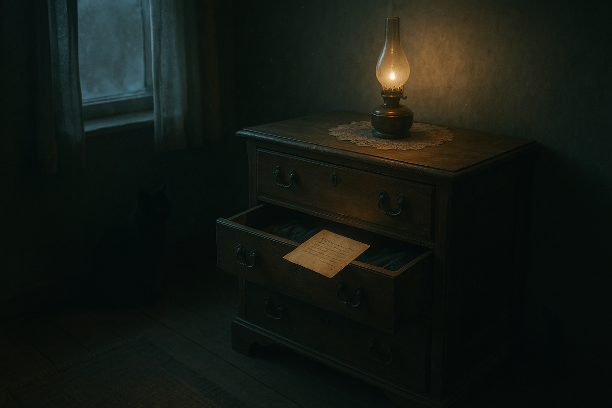 Я осталась на бабушкиной даче после похорон. Не на день-два — решила задержаться. Просто... было чувство, что надо. Дом скрипел, как всегда. Ветхий, деревянный, пахнущий старым бельём и пылью. Печка давно не топилась, но в спальне держалось удивительное тепло. Там стоял комод. Большой, тёмный, с резными ручками в виде веточек. Он всегда стоял в углу. Сколько себя помню — всегда. Первую ночь я почти не спала. Прислушивалась. Где-то щёлкало, крыша потрескивала, а этот комод... Скрипел. Не от сквозняка. Не от ветра. Будто... ворочался. Потом тишина. Заснула под утро. Вторую ночь — то же самое. Только громче. Будто кто-то там двигался, царапал. Я подошла, заглянула — ничего. Всё закрыто. На третью ночь он заговорил. Тихо... будто дыхание. Шёпот, вкрадчивый, еле уловимый. — Зиночка... Я вздрогнула. Это было бабушкино имя. Но она... так звала меня. Всегда. Шёпот был неровный, с перерывами. Как будто... старый голос, который вспоминает слова. Я открыла верхний ящик. Пусто. Второй — пара пугов