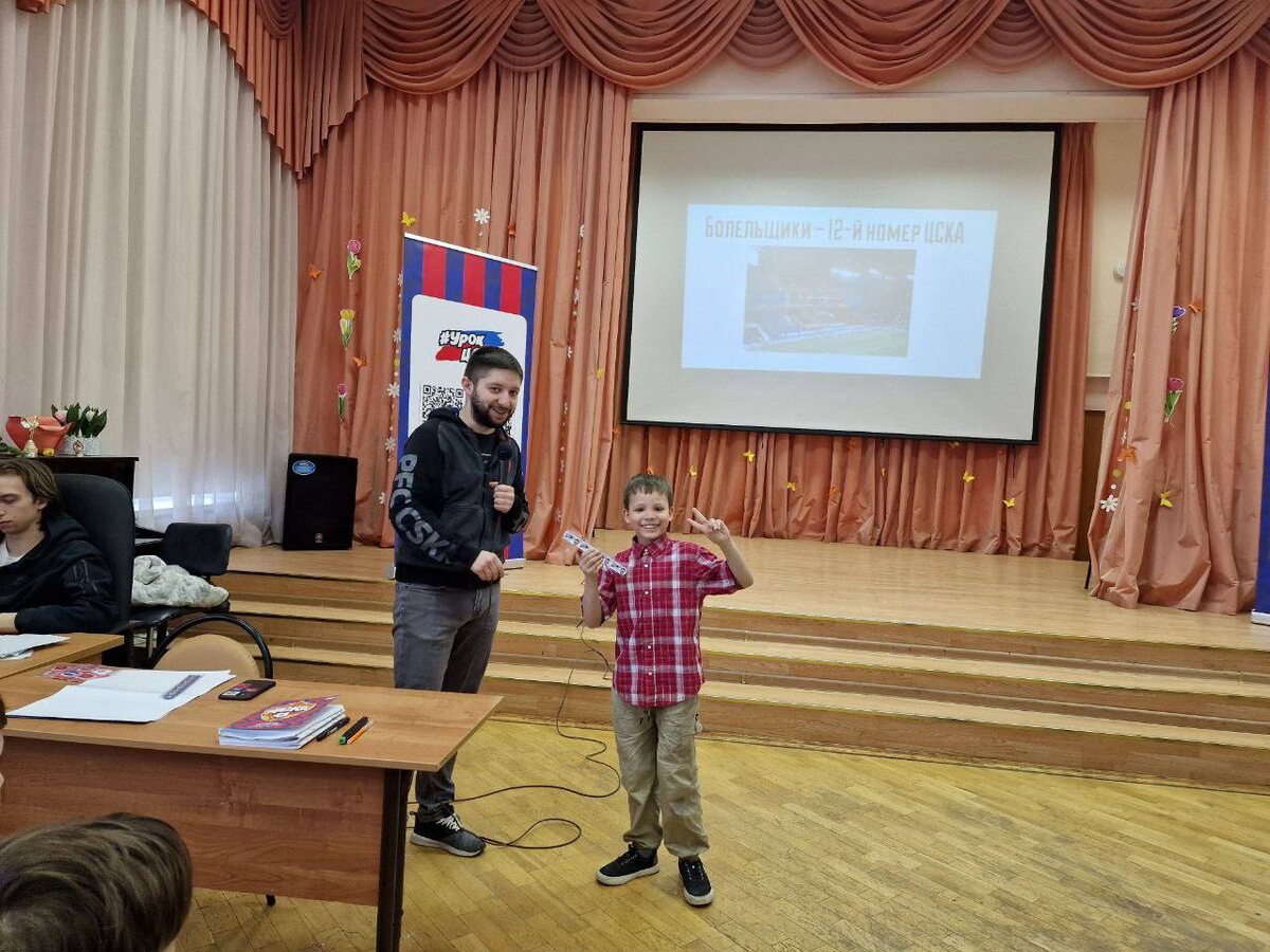 Урок ЦСКА для будущих Орлят и Первых ⚽️ Учебный корпус 3 посетили представители профессионального футбольного клуба ЦСКА, чтобы провести тематический классный час для действующих и будущих участников Движения Первых. 🏟️ В ходе необычного урока ребята узнали историю клуба, обсудили эмблемы, изменения стадиона, вспомнили известных футболистов и передали привет игрокам команды! 🔥Особенно Орлятам, Первым и будущим активистам понравились сувениры от футбольного клуба. Каждый, кто правильно ответил на вопросы, подняв руку, получил подарок. 💭👱🏻♀️ Советник по воспитанию Анна Владимировна Лукьянович отметила: «Урок ЦСКА задумывался для ребят из школьного спортивного клуба „Академический“, а точнее — для футболистов, которые занимаются у педагога Артёма Валентиновича Доморацкого. Его команда на протяжении этого учебного года участвует в Школьной футбольной лиге ЦСКА. Однако плотный график игр пока не позволил сделать сюрприз игрокам школьной команды. Кстати, во вторник наши ребята игра