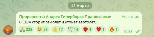 Ответ одному "разоблачителю" в YouTube. Вот как раз то что в США часто падают вертолёты - это каждый может сказать , для этого много ума не надо, а ты попробуй найди часто ли вертолёты в США тонут с кем- то важным на борту? Ведь именно такими были два моих пророчества. Я вон с трудом нашёл только один случай и вертолёт там НЕ УТОНУЛ А РАЗБИЛСЯ О ЛЁД и никто важный на борту не летел. Хотя любая человеческая жизнь бесценна. Так что Правда на моей стороне в подтверждение привожу новости Знаю что лёд невежества других не пробить, но мне важно было объективно установить истину на основании фактов, а не голословных заявлений .