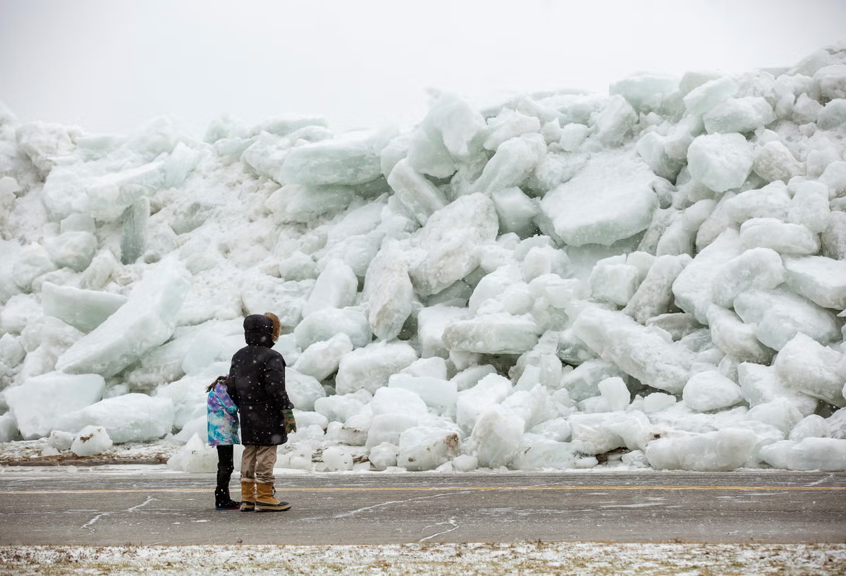 Это довольно редкое природное явление, возникающее при теплой погоде, когда лед в озере или другом водоеме становится достаточно рыхлым. Сильный ветер, дующий в сторону берега, ломает лед на куски, и вся масса обломков выползает на берег, круша все на своем пути. Доходит и до такого: Но есть и еще один вид ледяного цунами, принципиально отличающийся от описанного выше. Эта цунами состоит из множества тонких ледяных иголок, которые ручейком вытекают прямо из середины этого "сугроба". Это кадр из видео, сделанного на Байкале. При абсолютно спокойной погоде видно, как из этой кучки буквально льется ручеек тонких ледяных иголок. Ссылка на видео : https://laughingsquid.com/wp-content/uploads/2017/12/waves-freezing.gif Но эта цунами не настолько безобидна, как может показаться на первый взгляд. Вот кадр из видео, снятого в Канаде. Название этого видео - в левом верхнем углу экрана. Его можно посмотреть целиком. Картина, совершенно незабываемая. Волна из тонких ледяных иголок