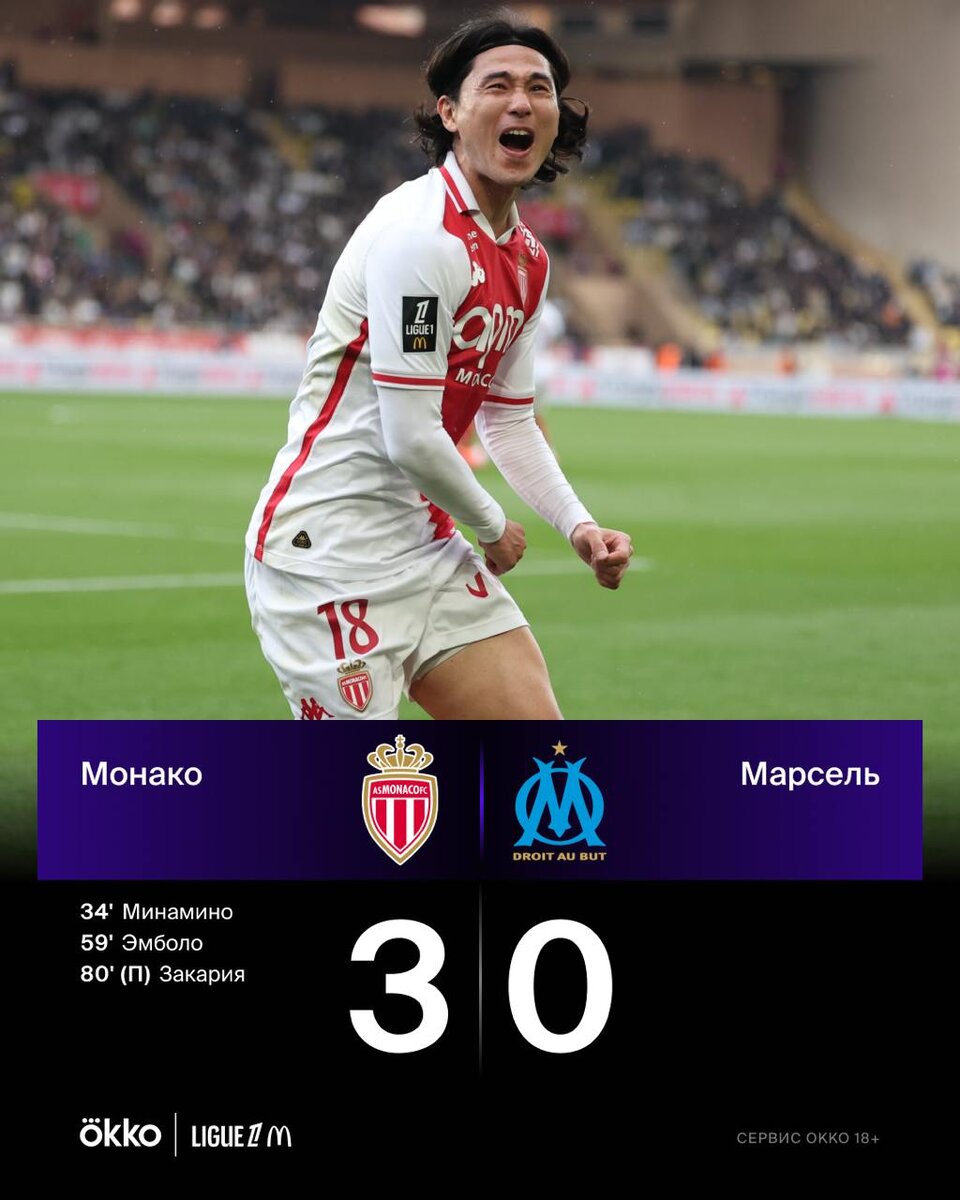 Убедительная победа «Монако» в главном матче тура. Теперь монегаски на втором месте в таблице 😏