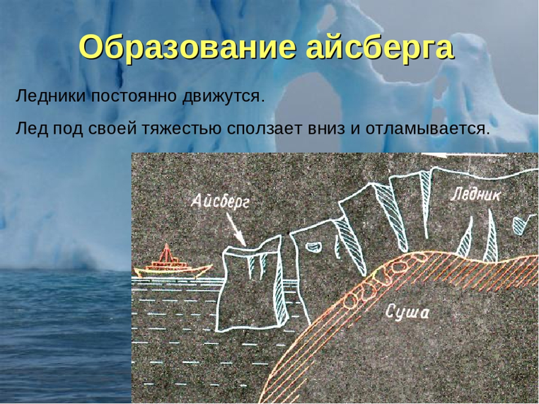 Они отламываются от ледника, сползающего с суши в океан. В этом случае лед ломается по кромке берега или вблизи нее.