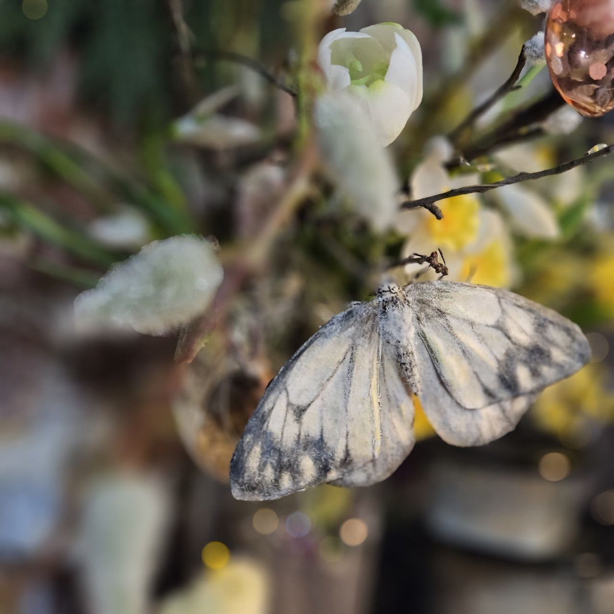 Новенькая. Свободна. 14 см. Брошь. Можно посадить на веточку в интерьере. От настоящей не отличить.