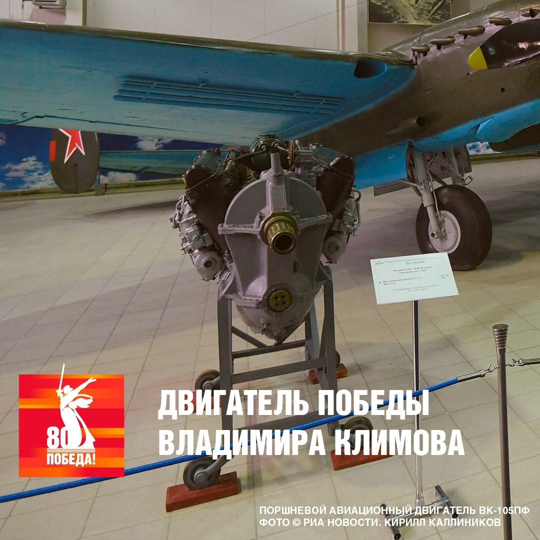 💫В годы Великой Отечественной войны изобретённые им двигатели были установлены на большей части советских самолётов. Конструктора Владимира Климова называют создателем «двигателей Победы». Под его руководством были созданы поршневые и реактивные двигатели мирового класса, но главным достижением стало создание двенадцатицилиндрового двигателя М-105. Работу над ним Климов начал ещё в 1937 году, и уже к началу войны двигатель выпускался серийно. Моторы Климова в годы войны устанавливали на большинство моделей истребителей и бомбардировщиков. Легендарный двигатель М-105 с 1943 года получил инициалы своего создателя – ВК-105. #Победа80 @Телеканал «Дубна»