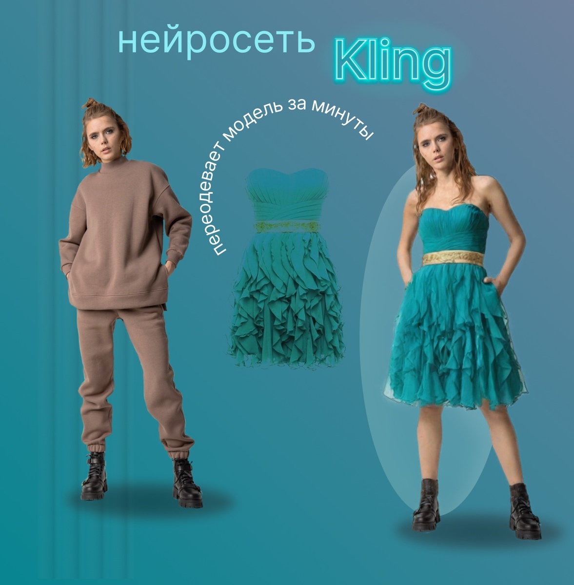 Бесплатная (пока) нейросеть Kling переодевает модель за минуты. Отличный инструмент для создания карточек товаров одежды.