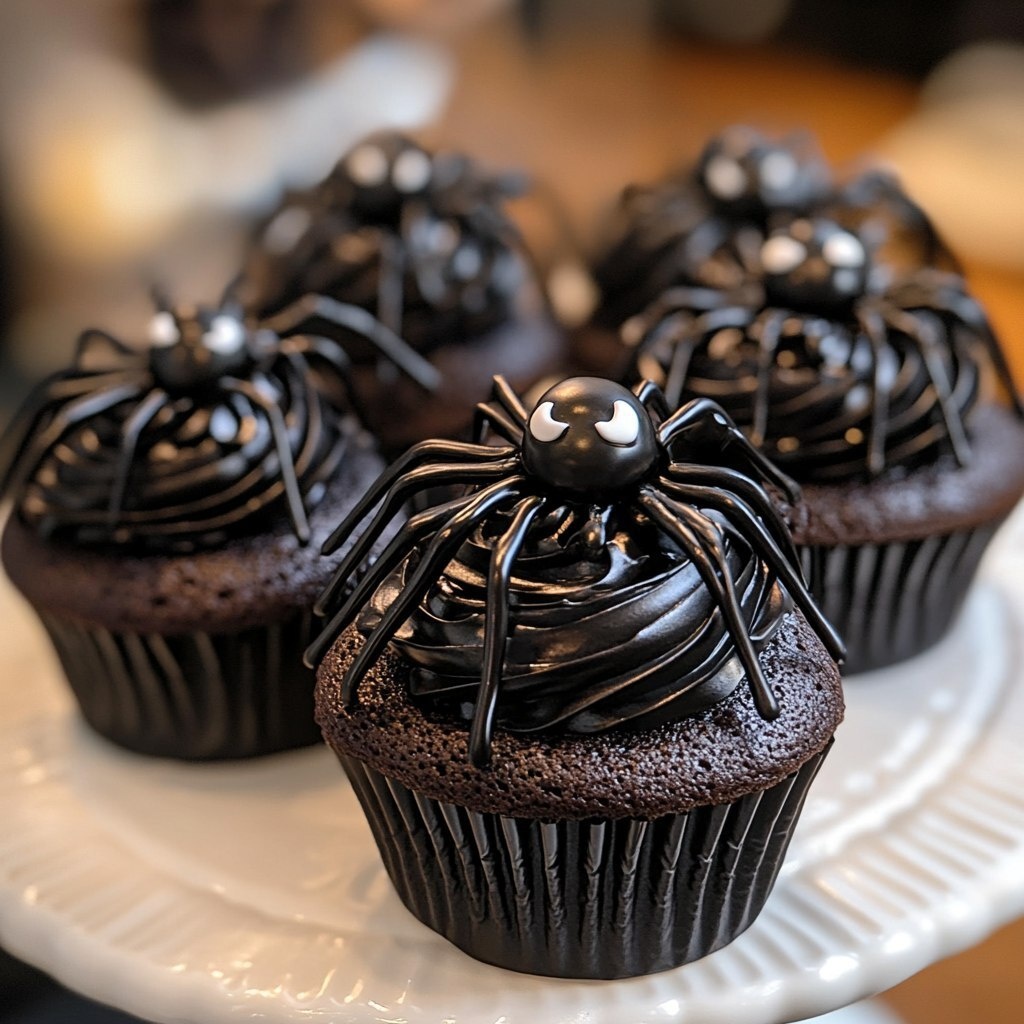 Создано на основе запроса: amateur close up shot of homemade Black Spider Cupcakes