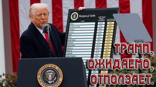 Трамп "отползает", то есть "перегруппировывается" в торговой войне. Не на долго хватило «тарифного запала» Трампа против Китая. Введя 145% пошлины, в том числе, на чипы, смартфоны и компьютеры (с компьютерными комплектующими), и получив зеркальную обратку, Трамп понял, что нужно отползать. Возможно временно, но отползать. Ну нечего сейчас США противопоставить против китайских высокотехнологичных комплектующих. И посему, сегодня были отменены дополнительные пошлины на вышеуказанные категории продукции. И даже если Трамп сумеет добиться от американских компаний развернуть соответствующие производства внутри США, это всё равно не решит проблему. Хотя бы потому, что примерно 3/4 редкоземельных металлов, которые как раз и применяются при производстве высокотехнологичной электроники, добывает либо в Китае, либо китайскими компаниями по всему миру. Так что на любой антикитайский ход США, у Китая всегда есть чем ответить. Хотя бы, сырьевой блокадой. Благо, нас в России это не касается. У н