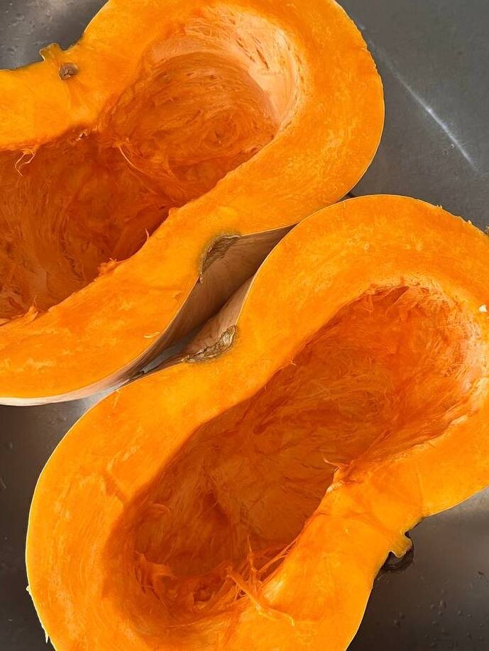 Тыква богата каротином, витаминами А, группы В, С, и Е, микроэлементами: K, Mg, Ca, Fe, а так же клетчаткой. Благодаря чему ускоряет метаболизм, помогает сбросить вес, выводит лишнюю жидкость из организма, избавляет от отеков и многое другое. Целая кладезь полезных элементов! Ингредиенты (на 7-8 порций): 🥣Тыква — 1,5 кг (пол средней тыквы); 🥣Картофель — 4 шт (среднего размера); 🥣Морковь — 2 шт; 🥣Овсяное молоко 150 мл (или любое другое растительное/раст сливки); 🥣Овощной бульон — примерно 200 мл; 🥣Соль и перец черный молотые — по вкусу; 🥣Лавровый лист — 1-2 шт; 🥣Микрозелень - для украшения (или петрушка); 🥣Тыквенные семечки - по желанию; 🥣Сухарики из хлеба. Приготовление: Чтобы крем-суп получился вкусным, нужно выбрать ингредиенты очень тщательно и, конечно же, свежие. Тыкву моем, делим по полам, очищаем от твердой кожуры, убираем семечки и мякоть. Нарезаем нашу половину тыквы на большие кубики. Затем берем морковь уже очищенную и картошку и тоже нарезаем средними кубиками. О