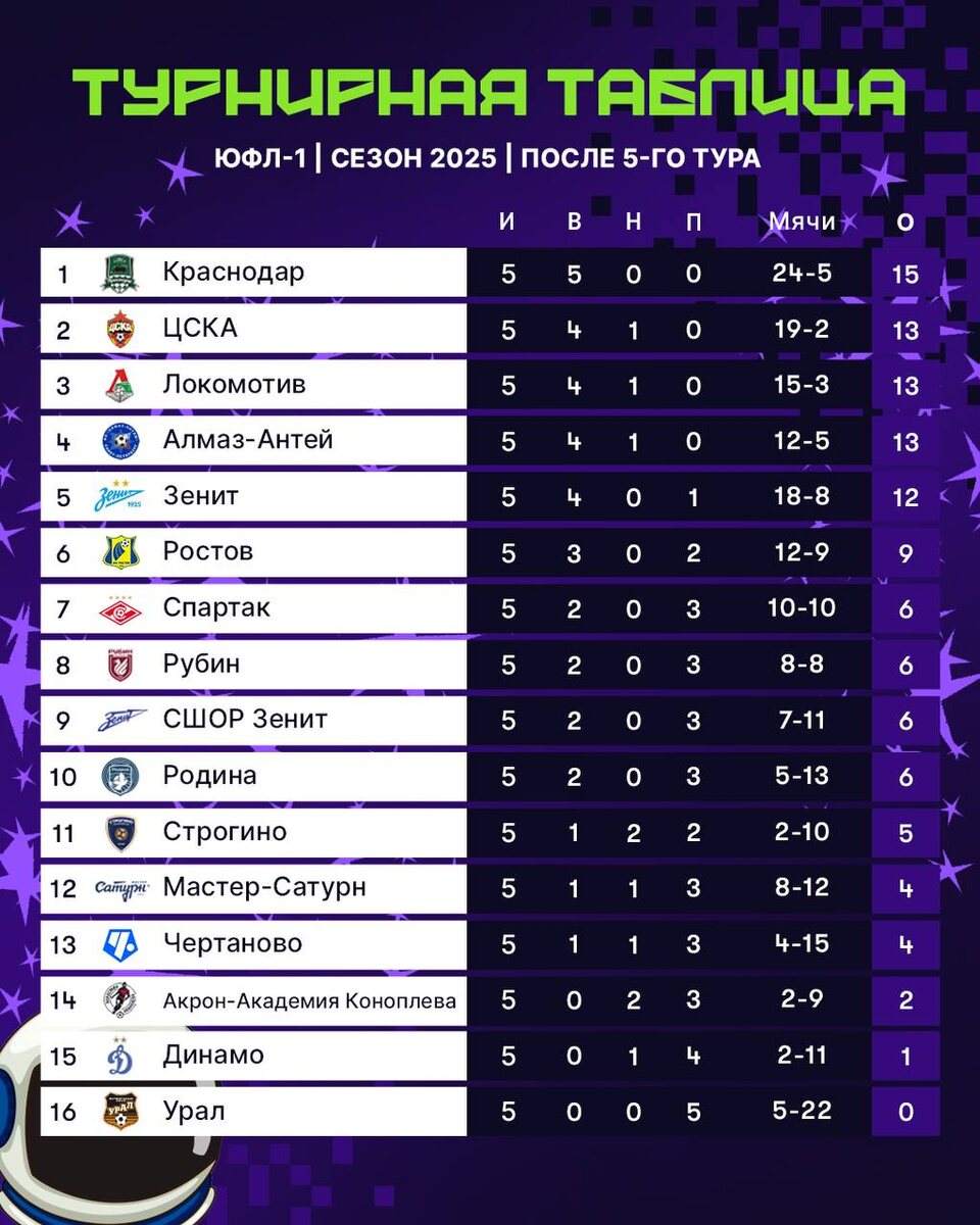 Пятый тур подошел к концу. И только «Краснодар-2008» может похвастаться стопроцентным результатом 👏