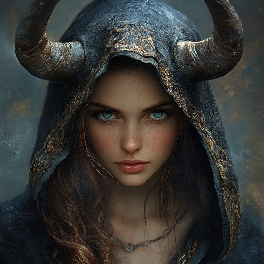 Создано на основе запроса: women wearing hood with horn’s realistic high definition