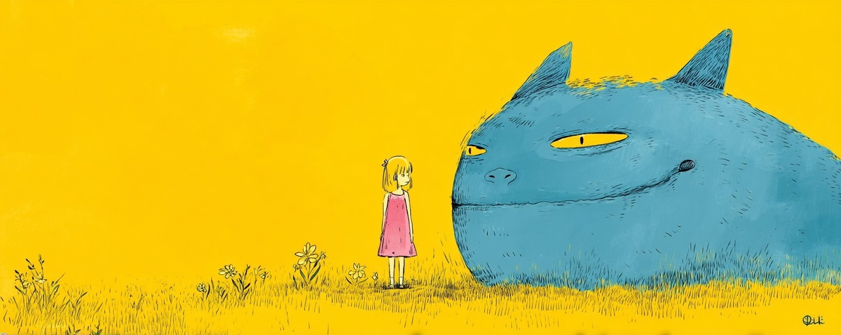Создано на основе запроса: little girl and her blue Nibiru imaginary friend, by studio ghibli