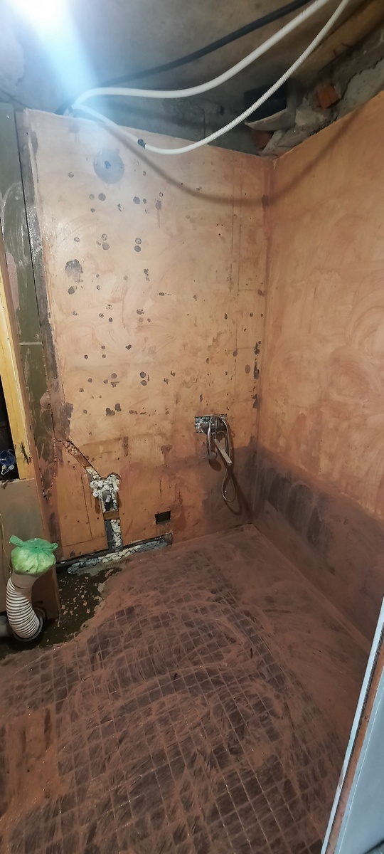 Друзья, сегодня у нас ремонт, в так называемой "ванной кабине", стены которой собраны из цсп (цементно-стружечная плита). Домов с такими ванными комнатами по Москве не мало. И не мало заказчиков, которые бояться за стояние и надежность таких стен в ванной комнате, особенно после демонтажа старой плитки. Не редко, в таких ванных комнатах стены выкладывались на половину плиткой, а выше красились краской. Вид таких стен не внушает ни какого доверия, тем более, если учитывать, что стены поведенные и деформированные. Ни каждый заказчик может себе позволить по каким то своим причинам полностью разломать эти стены и выложить новые из блоков. Первым делом, мы должны счистить со стен все то, что может отчиститься механическим ручным трудом, облупившиеся краска, остатки плиточного клея и тд. Затем грунтуем поверхности и даем высохнуть. После покрываем бетоноконтактом в один, два слоя. Заказчик пожелал установить ванную с открывающимся пластиковым экраном, поэтому, давайте сначала выложим плитк