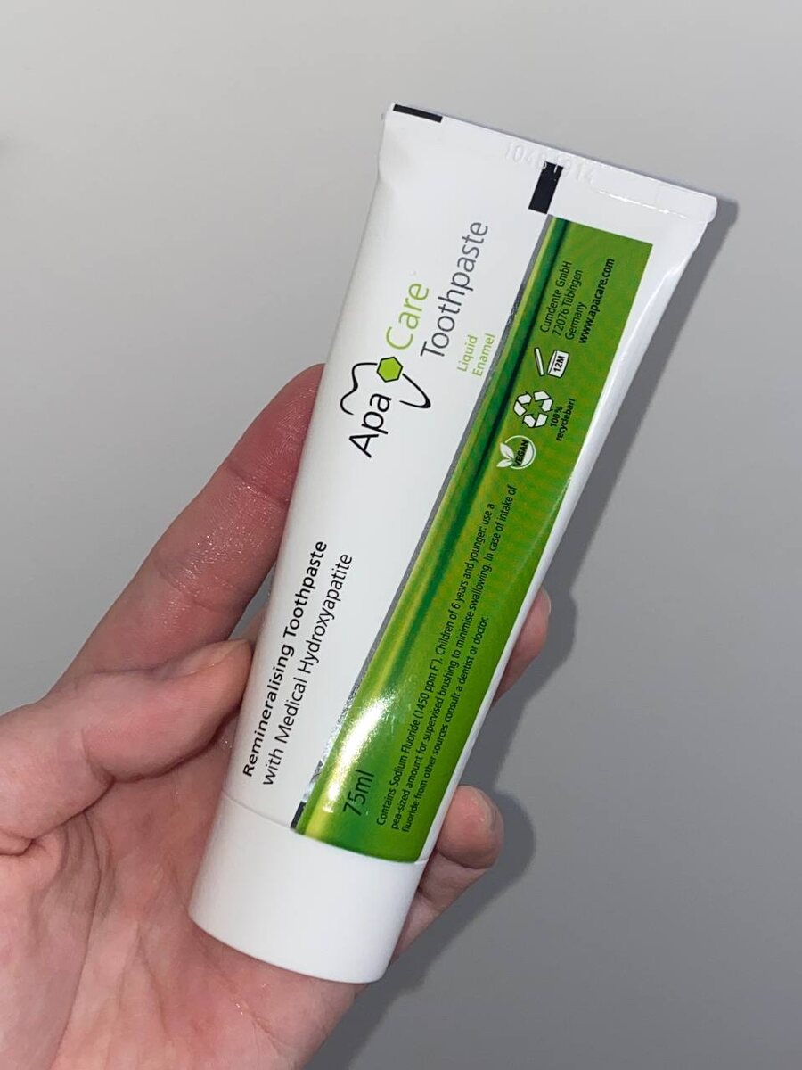 Паста, которая уберет чувствительность, реминерализирует, профилактику кариеса сделает, идеально очистит и еще отбелит. Это ApaCare с гидроксиапатитом, которые все это волшебство и делает с вашими зубами. Он выполняет реминирализирующую функцию за счет чего полностью убрал чувствительность. Но плюшка которую я не ожидала и сильно ей обрадовалась — это отбеливание. Раньше я каждую неделю проходилась монопучком и отбеливающей пастой, чтобы добела вычистить зубы, сейчас эта потребность отпала потому что они итак чище некуда!